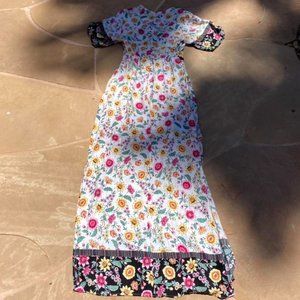 Forever 21 Floral dress, wore once, in excellent used condition. Dress has a zipper back, a slit up the right leg & left leg is really cute & comfy. It also has a lining halfway down the dress to make it not see through. The lining stops at the slits. Perfect for a casual summer day out or even a lunch date w/ friends. Don't miss out!
