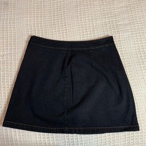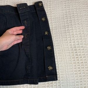 Forever 21 Faded Black Denim Mini Skirt With Side Buttons Size Medium. Side buttons all come undone to open the skirt up. 100% cotton. Measurements are approximate and taken while the item is lying flat... waist 14.5"..length 15.5"... This skirt has a few marks on it that did not come out in the wash!! They are not super noticeable, but definitely there!! Please see the picture where I point to them and check the photo before purchasing. Priced accordingly! :)