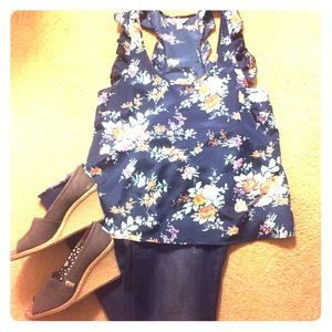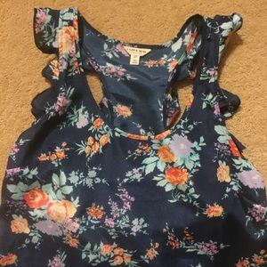FOREVER 21 Floral Tank - size small. Ruffled sleeves for a feminine detail. Looks great with jeans and a cardigan. Smoke free and pet free home.