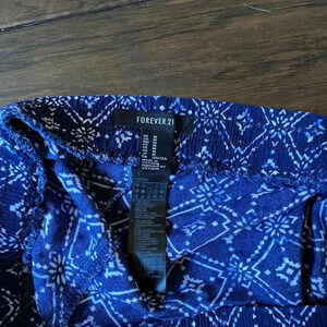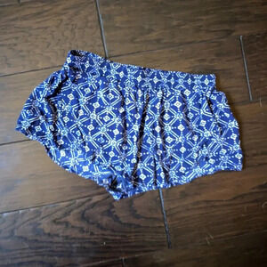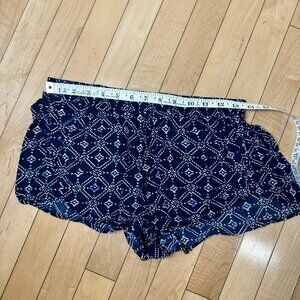Cute navy and white batik print. Elastic waist. Flowy short style. Splits up side of leg. Sized medium, but run small.