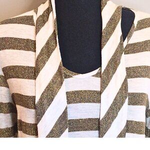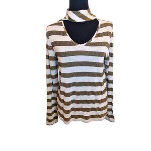 FOREVER 21 GOLD AND CREAM STRIPE TOP WITH WRAP COLLAR - SIZE S