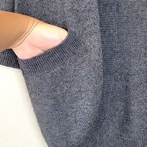 Gray, 3/4 sleeve, cardigan sweater made by Forever 21 in size Large. Open front with no closure. 2 hand pockets. Ribbed detailing around the neckline, sleeve cuffs, and pockets. Wool/Lyocell/Nylon blend feels soft and comfortable. Dry clean only! This versatile sweater is perfect for layering when you need a little extra coverage. There is minor fuzziness throughout from normal wash and wear. But overall, it is in GUC with no holes, snags, or stains. Bundle with other items for the best deal!