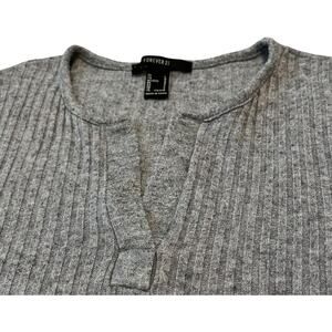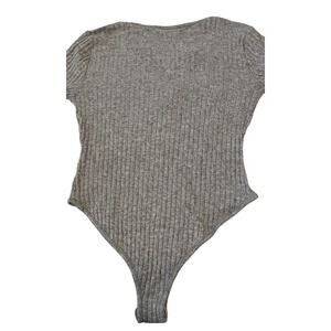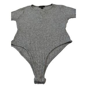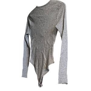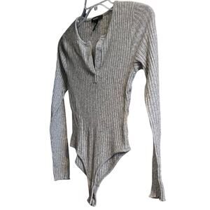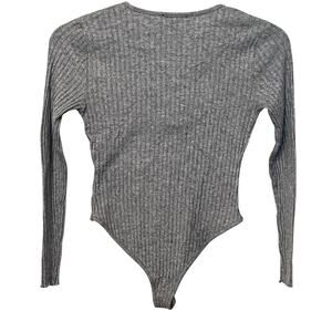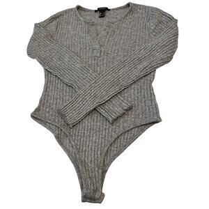 FOREVER 21 HIGH-RISE LONG SLEEVE RIBBED KNIT BODYSUIT, WOMENS, L, GREY, SNAPS