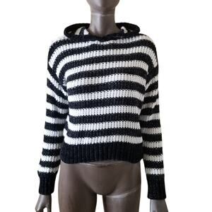 FOREVER 21 Hooded Sweater Juniors 13/14 Black White Striped New