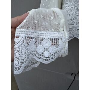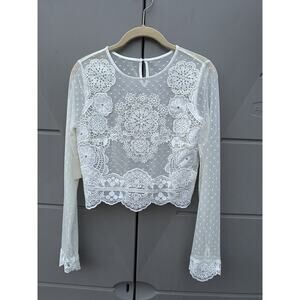 FOREVER 21 IVORY SHEER LACE CROCHET CASUAL TOP SZ Medium Coquette Festival