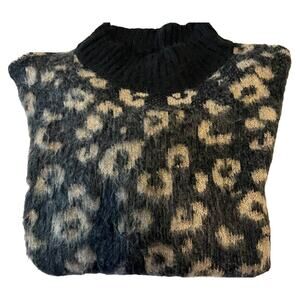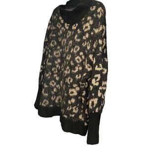 FOREVER 21 LONG SLEEVE TURTLE NECK SWEATER, WOMENS, 2X, BLACK/BEIGE ANIMAL PRINT