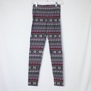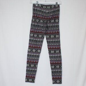 Aztec/Snowflake Black/Blue Red Leggings - waist - 12" unstretched, inseam - 29", rise - 8.5", length - 37", cuff - 4.25"