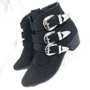 FOREVER 21! LUXE BLACK VEGAN SUEDE LEATHER TRIPLE BUCKLE ZIPPER BOOTS! SZ 8M
