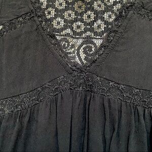 Feminine and bohemian black swing style pullover top from Forever 21 features lingerie-like lace details, slight racerback cut, and lightweight feel — perfect for summer.