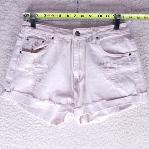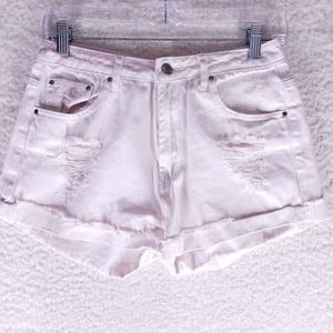 FOREVER 21 Light Pink Destroyed Raw Hem Jean Shorts Womens Size 26 High Rise