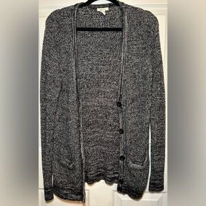 FOREVER 21 Marled Front-Pocket Button Cardigan- Black/White Size Small