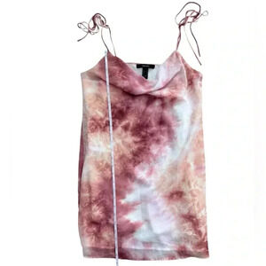 FOREVER 21 Mauve Pink Tie-Dye Cowl Neck 90s Mini Dress Smal Tie Spaghetti Straps