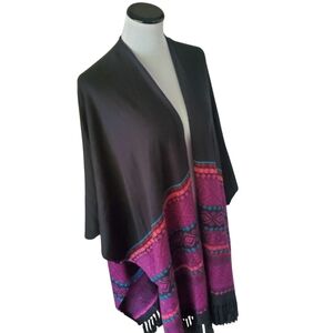 FOREVER 21 Multi-Colored Southwestern Aztec Open Front Tasseled Women's Poncho