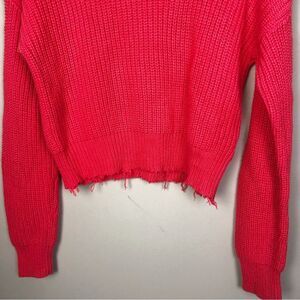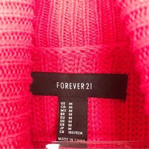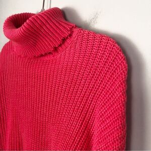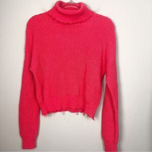 Cute chunky knit sweater by Forever 21. Bright coral pink color. Turtleneck. Long sleeves. Cropped length with raw edge chewed hem. Great condition. Womens size medium.