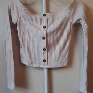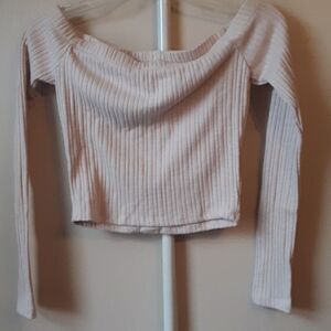 FOREVER 21 OFF SHOULDER LONG SLEEVE RIBBED CROP TOP S