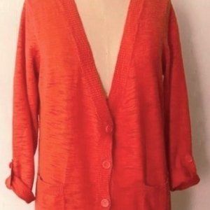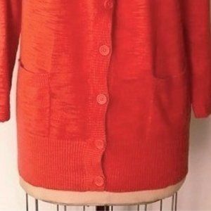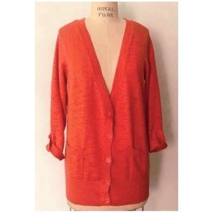 FOREVER 21 ORANGE COTTON SLUB KNIT 3/4 SLEEVE CARDIGAN SWEATER L