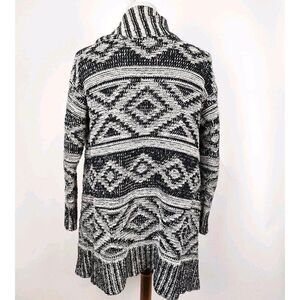 FOREVER 21 Open Drape Front White/Black Tribal Long Cardigan Sweater Womens S