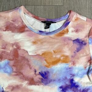 FOREVER 21 Orange & Purple Tie Dye Short Sleeve Bodycon Midi Dress