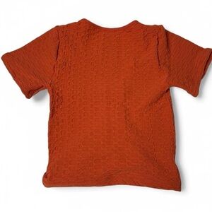 Textured orange crop top with a ruched tie-front detail. Super flattering and perfect for layering, brunch, or a cute chill day. Size M.