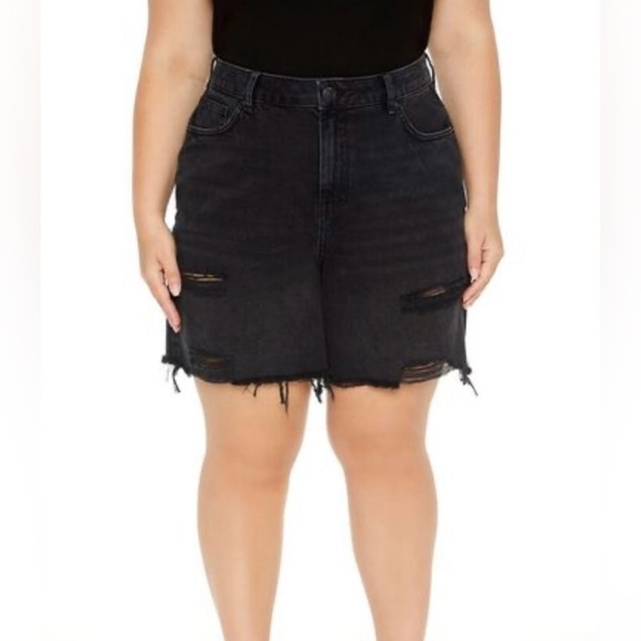 FOREVER 21+ Plus 16 Black Denim Distressed Denim Shorts NWT R$28