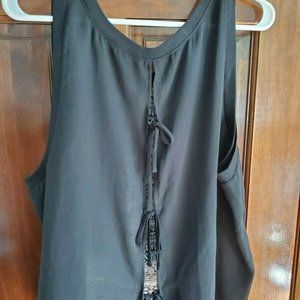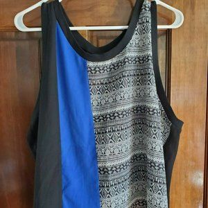 FOREVER 21 Plus Size 2x Black Blue Colorblocked Print Blouse Sheer Open Back
