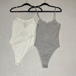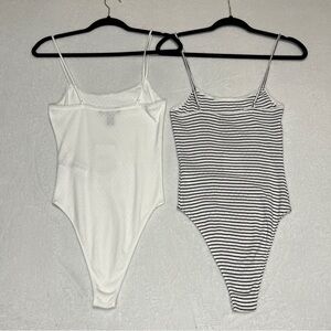 FOREVER 21 Pointelle Knit Bodysuit Bundle 1) White 2) White black Stripes Small