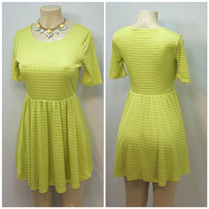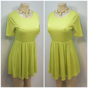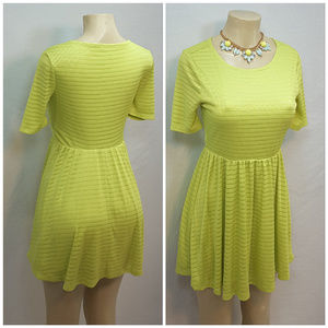 FOREVER 21, Pull Over Dress, size Large See Measurements, dress fully lined, sheer sleeves, elastic gathered waist, almost looks like a rib knit pattern, light-weight stretchy soft slinky flowy material, machine washable, 97% polyester, 3% spandex, approximate measurements: 32" length, 16.5" bust laying flat, 18" hips laying flat, 10” sleeves. Necklace NOT included. SAVE BIG! AUTOMATIC 30% BUNDLE DISCOUNT! ADD TO A BUNDLE!