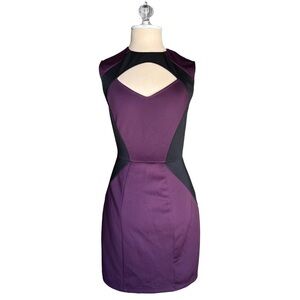 FOREVER 21 Purple Plum Black Colorblock V Neck Cutout Bodycon Sleeveless Small