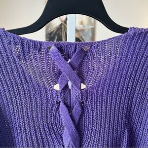 FOREVER 21 Purple S Slouchy Lace Up Back Box Sweater Cable Knit Scoop Neck