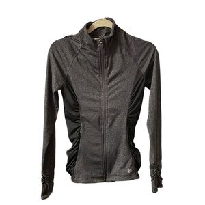 Pre owned excellent condition gray and black ruched activewear jacket. WOMENS size medium.