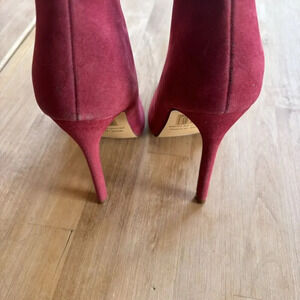 FOREVER 21 Red Maroon Faux Suede Point Toe High Heel Stiletto Ankle Booties 5.5