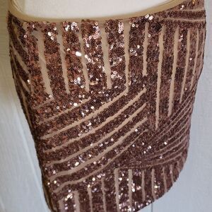 FOREVER 21 Rose Gold Sequined Mini Skirt Holiday Party Date Night Sparkly