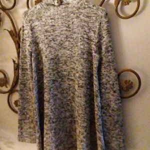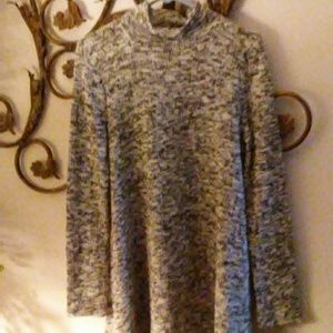 I'm not sure why the pix keep coming out blurry, may be the mingle of coloring. Pretty in a Charcoal/Gray/Cream Color. Measurements ... Bust 18". Length 33", Sleeves 26", Shoulder 17". Mock neck shift style/loose fit dress ... Has stitch detail on lower sleeve. Perfect in a Medium weight sweater fabric has body, not clingy. Any questions please ask.