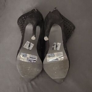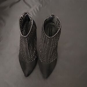 FOREVER 21 SUEDE POINTED TOE BACK ZIPPER CLOSURE CUTOUT DESIGN WOMEN"S SANDAL SIZE 6.5 COLOR BLACK MADE WITH ALL MAN MADE MATERIALS HEEL HEIGHT MEASUREMENTS APPROX 4"INCHED THIS ITEMS IS PRE-OWNED EXCELLENT CONDITION WITH ONLY LIGHT SIGNS OF WEAR IF ANY CHECK THE PICTURES