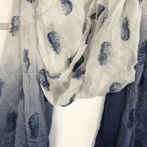 FOREVER 21 Pineapple Tropical Pom Pom Accessory Fashion Scarf Blue Cream 16W 77L.
