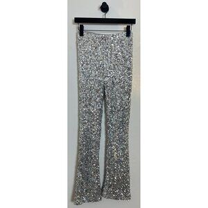 FOREVER 21 Sequin Flare Pants in Silver Size Small NWT