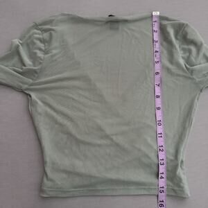FOREVER 21 Sheer Mesh V-Neck Crop Top Sz S Green Floral Fairy Whimsigoth 90s Y2K