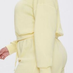 Forever 21 French Terry 2 piece shorts set, crew neck, long dropped sleeves, smocked waist top with matching drawstring waist, raw cut hem and comfy related fit. Poly/rayon blend. Summer is here!!!