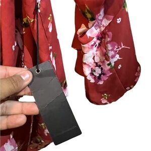 Great Condition! Forever 21+ PLUS SIZE 3X Red with Pink Floral Designs Off the Shoulder Top with Ties on the front and back of the shirt as well as a widened sleeves with a flare. Comfortable & Light weight material