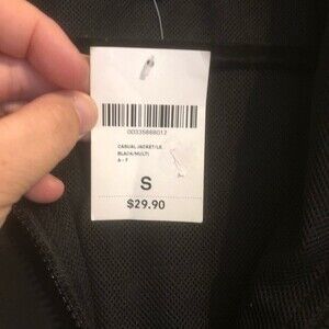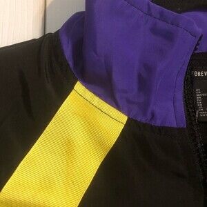 Size small new with tags black crop jacket with yellow and purple accents. This has an 80's vibe to it. Full zip front with belt type closure at waist. Elastic at wrists. Slight bat style sleeves.
