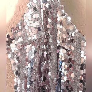 Cute, sexy, sparkly party dress by Forever 21 in pinkish/silvery round sequins. Has some stretch and adjustable straps for a perfect fit. Excellent condition.