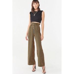 FOREVER 21 Striped Paperbag Wide High Waist Pants