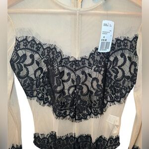 FOREVER 21 Tan Bodysuit with black lace Size M