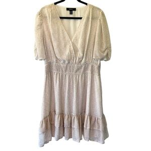 FOREVER 21 ~ Tan Delicate Floral Crossover Bodice Dress with Ruffle Hem ~Size 2X