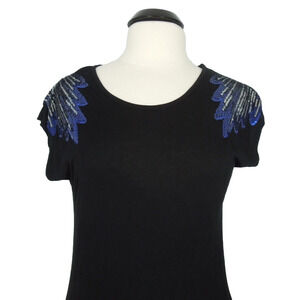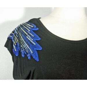 Sequins Embellished Tee, scoop neck teewith cobalt blue & black sequins on shoulders