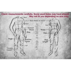 1 inch equals 2.54 centimeters. Check measurements carefully - (*some used clothes may be shrunk). Measurements are taken by laying the garment flat.