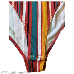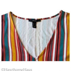 FOREVER 21 V Neck Striped Bodysuit Size S Long Sleeve Snap Bottom Stretch