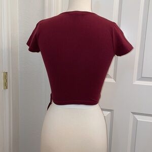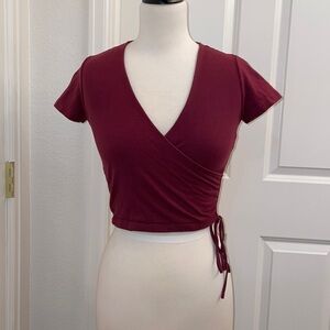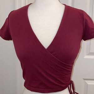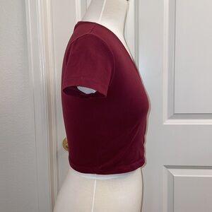 FOREVER 21 V-neck maroon Crop top with side cinch tie in women’s size small