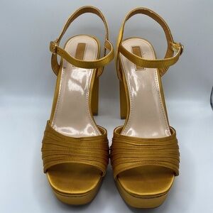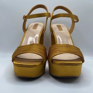 FOREVER 21 WOMEN’S GOLD PLATFORM BLOCKED HEELS SANDAL SZ 7.5
