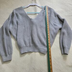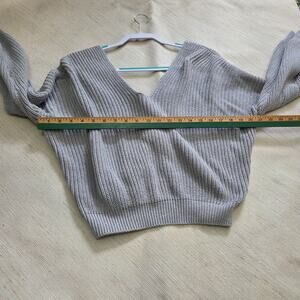 FOREVER 21 Woman's Grey Long Sleeve Sweater size S half open cross back
